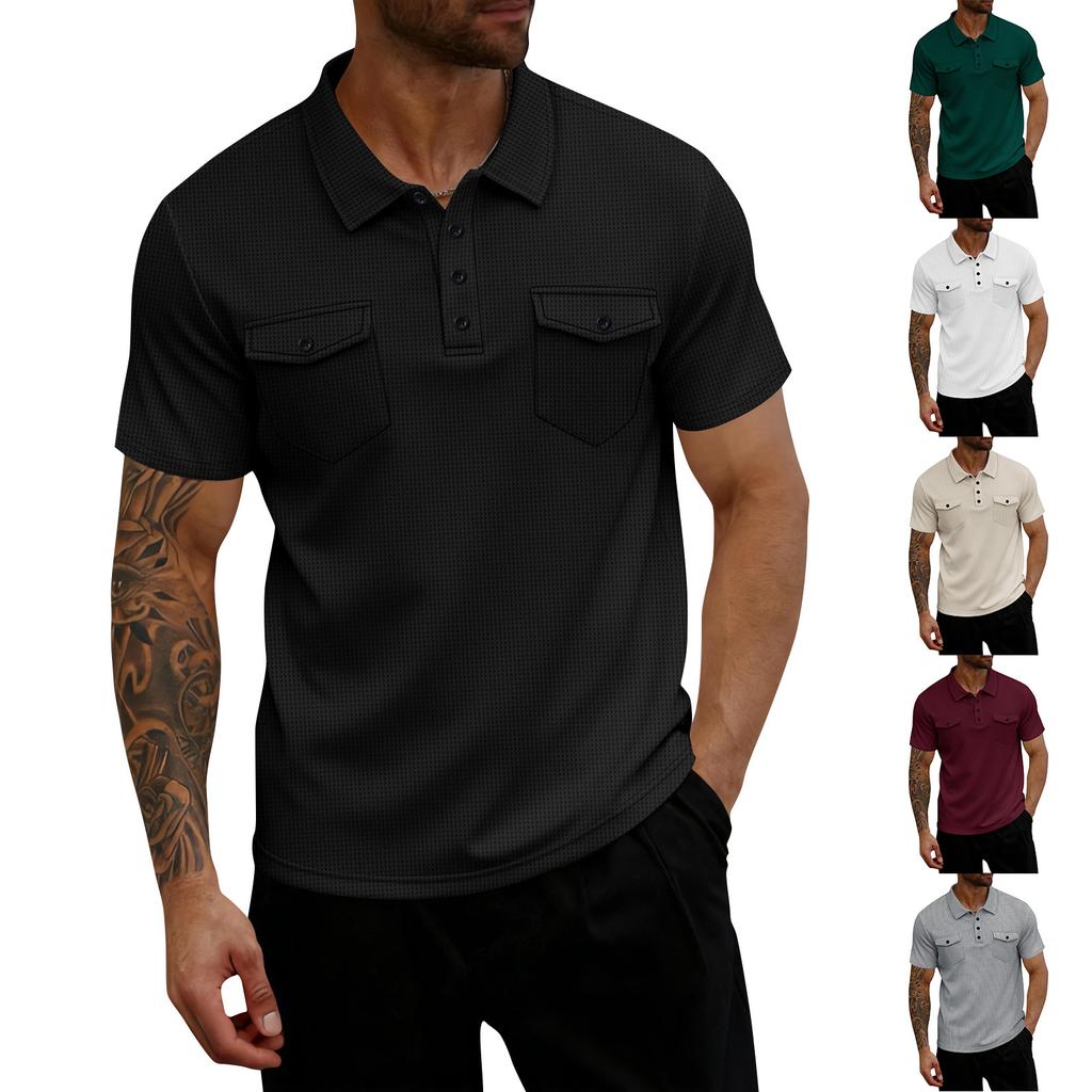 Men's Single Breasted Collared Shirt With Pockets Casual And Comfortable Short Sleeved Shirt