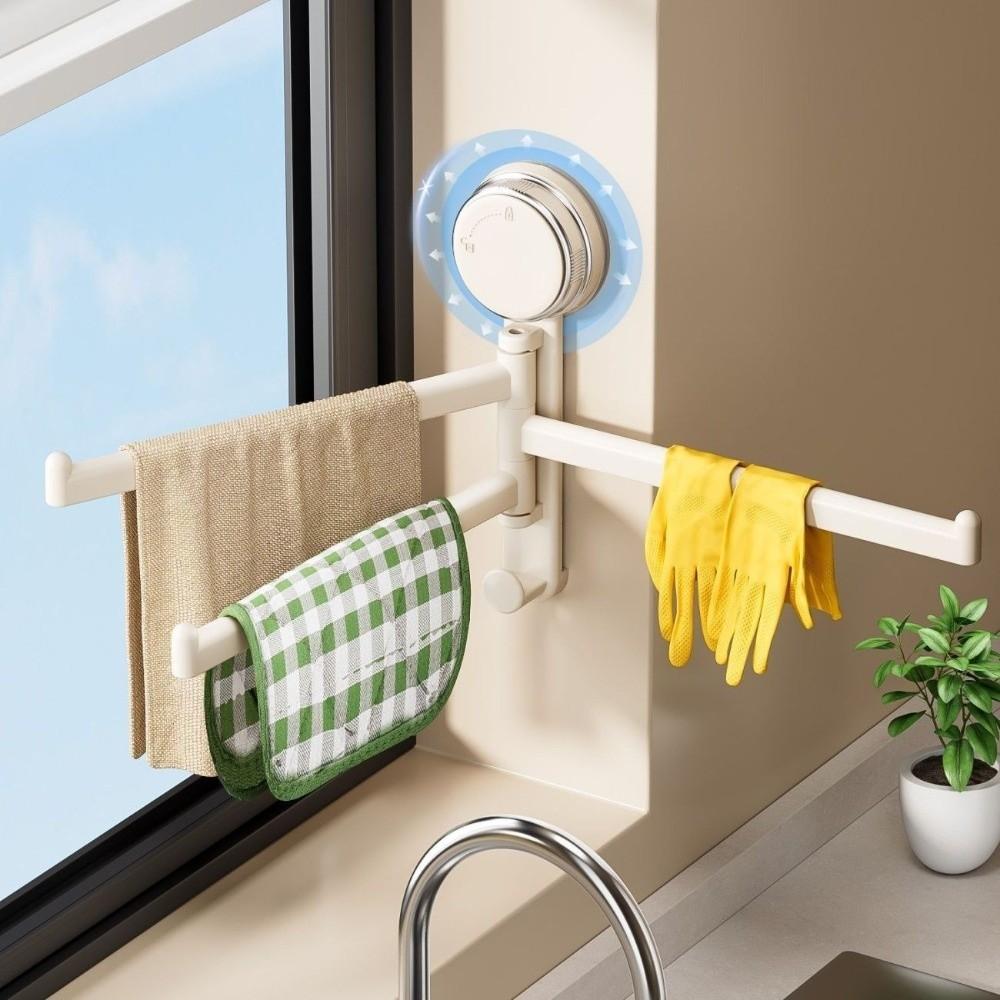 3-Bar Towel Rack No Need To Drill Bath Towel Rack Quality Rotating Towel Hanger Kitchen