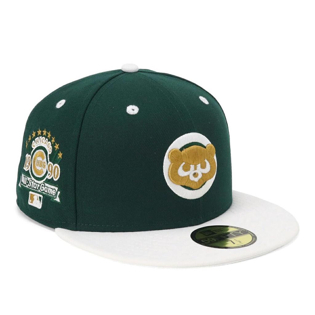 New Era 59FIFTY Cap MLB Chicago Cubs CHC Dark Green Side Patch Sneakers ONSPOTZ Exclusive and Gokyu Fifty 5950 Side Patch Straight Flat Visor Fashion
