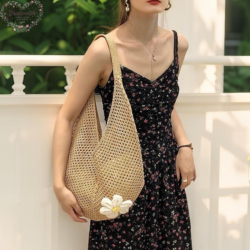 2026 New Hand-Woven Bag for Women Large Capacity Single Shoulder Tote Straw Beach Bag for Vacation
