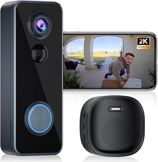 [180° Full-Field View, Ultra-Wide Angle Video Doorbell] - 2025 New Model: "Full-Body View (Game-Changing Vision!)" Tired of old-fashioned doorbell cameras that only capture half of your body? Our all-new 2025 wireless doorbell camera solves that problem once and for all. The 180° ultra-wide-angle lens captures your visitors in crystal-clear detail from head to toe. No more guessing whether they're carrying a package or missing half the scene. See everything from the delivery person's face to where they left the box at your doorstep. Finally, a doorbell camera that covers it all. Perfect for deterring porch pirates and knowing exactly who's at your door. Note: 2.4GHz Wi-Fi compatible (5GHz not supported). [2K HD Day/Night Vision] - As clear as day, even in the dark. Our wireless doorbell camera delivers crisp 2K resolution, allowing you to zoom in and see details like faces and license plates. With 10-meter infrared night vision, you can monitor your front door like a pro, even in pitch black conditions
