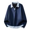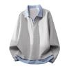 Men's Waffle Knit Fake Two-Piece Casual Fashion Polo Sweatshirt