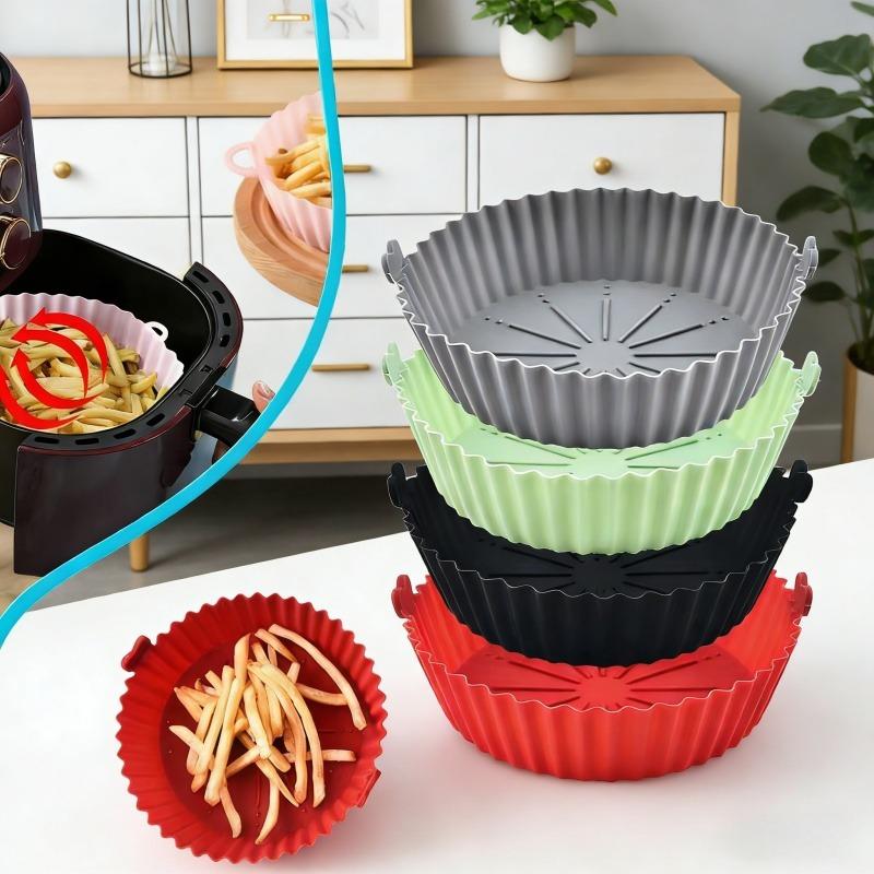 Round Air Fryers Oven Baking Silicone Tray Fried Chicken Basket Mat Air Fryer Silicone Pot Grill Pan Home Kitchen Supplies