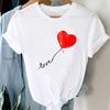 (European Size) 90s Print Women Love Trend Style Cute Lady Short Sleeve Tee Top Clothing Casual Fashion Tshirt Female Graphic T-shirt