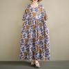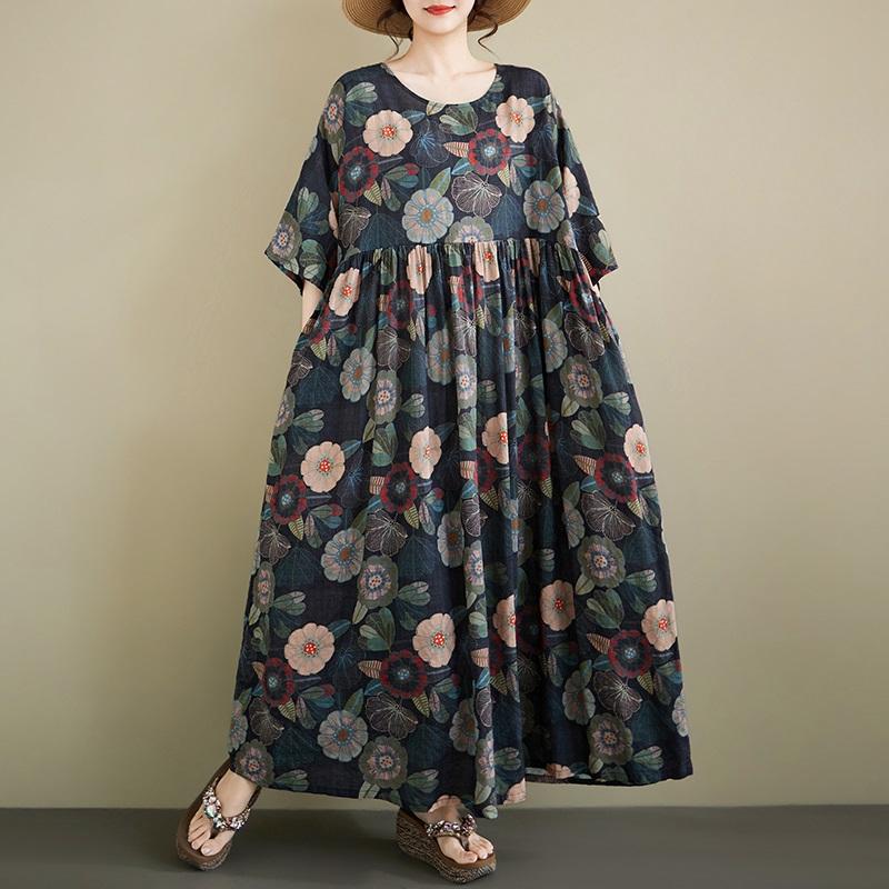 Short Sleeve Plus Size Cotton Vintage Floral New In Dresses for Women Casual Loose Long Summer Dress
