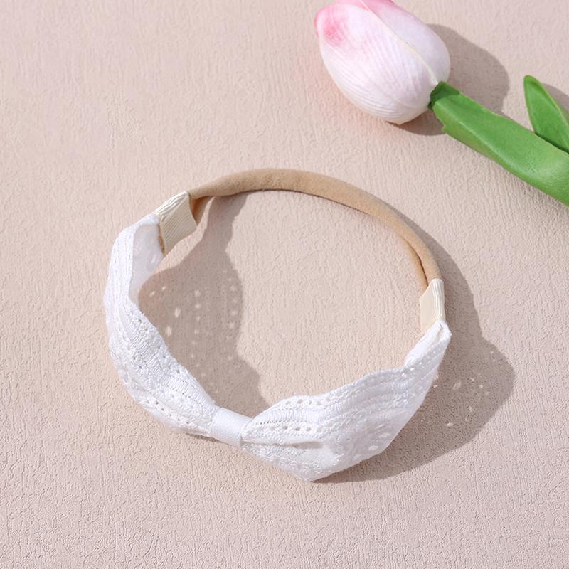 1Pc Fashion Daily White Lace Bow Baby Headband Soft Handmade Elastic Hair Band For Children'S Headwraps Kids Hair Accessories
