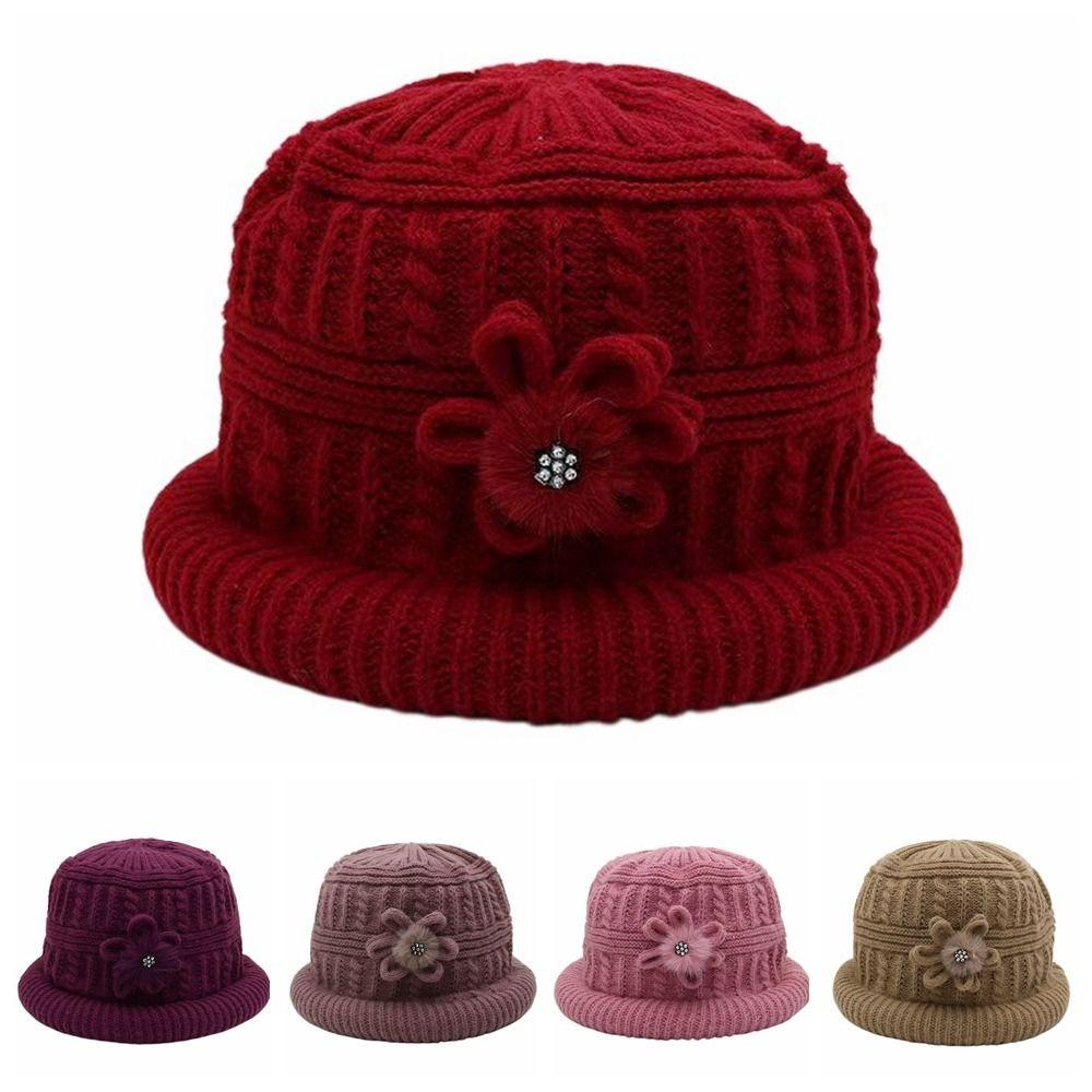 Plush Woolen Hat Flower Warm Fisherman Hat Retro Floral Knitted Bucket Hat Autumn and Winter