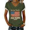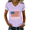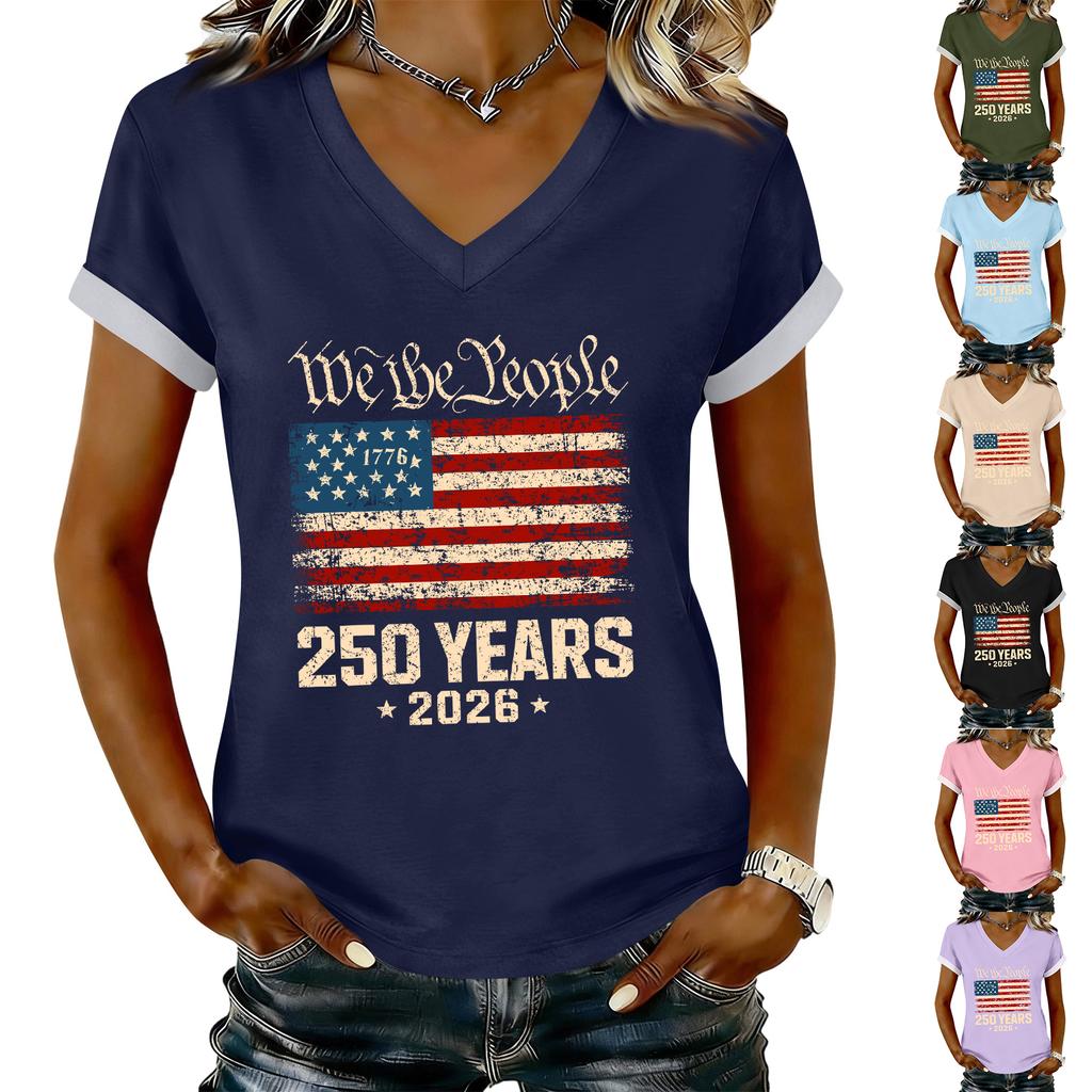 Women's Casual Printed T-Shirt V Neck Pullover Short Sleeve Top