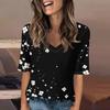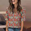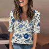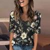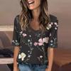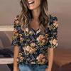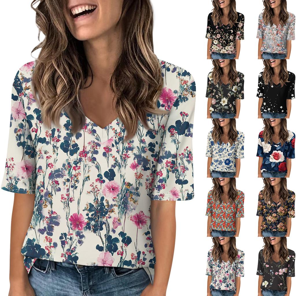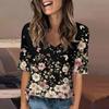 Women's Fashionable Casual Short-sleeved Five-quarter Sleeve Floral Print V-neck Top