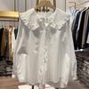 Korean Version Loose Doll Collar Ruffle Edge Shirt Spring and Autumn New Retro Long Sleeved Shirt