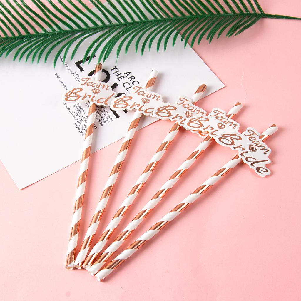 10/20pcs Team Bride Rose Gold Paper Straws Bachelorette Party Wedding Decoration Drinking Straw To Be Hen Party Birdal Shower