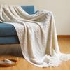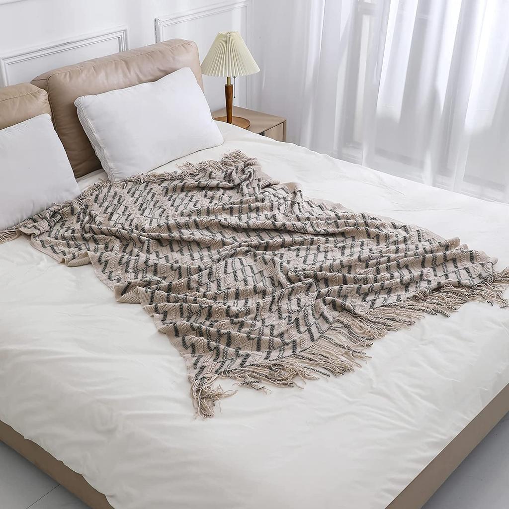100% Acrylic Khaki Knitted Blanket with Tassel Gift Blanket Bed Sofa Travel Breathable Chic Bohemian Soft Comfortable Blanket