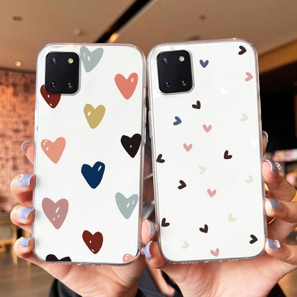 Non-Yellowing Phone Case For Samsung Galaxy Note 10 Lite S10 S10e S10+ S9 + S9 Plus Heart Transparent Clear Love Couple Cover