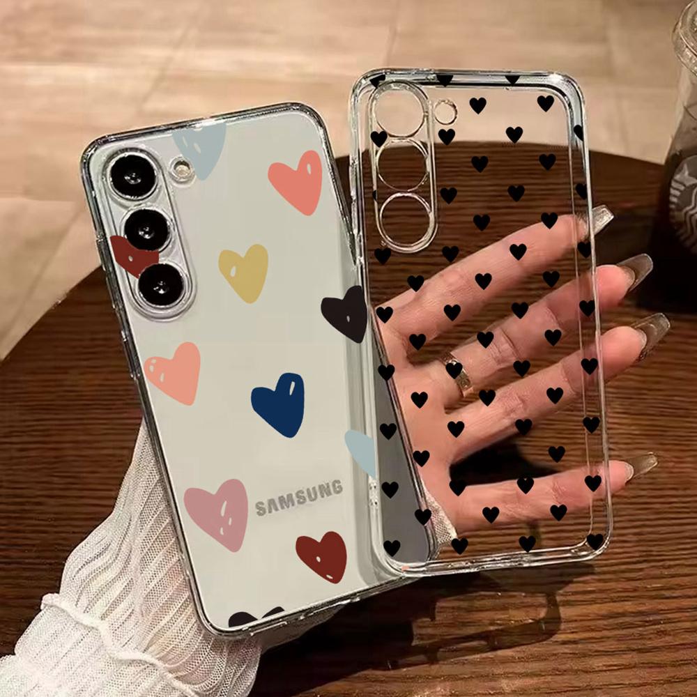 For Samsung Galaxy S25 Ultra S24 S26 S22 S21 S20 Plus S21 S23 S24 FE Heart Love Phone Case Transparent Clear Cover Silicone Back