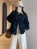 Women's Slimming Lapel Lambswool Padded Denim Jacket - Retro & Versatile