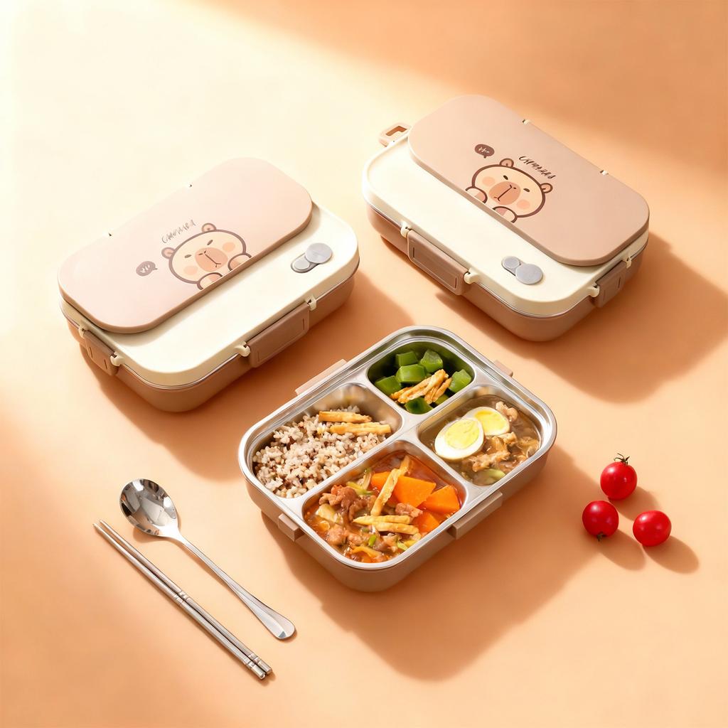 1500ML 4/5 Grids Portable Capybara 304 Stainless Steel Lunch Box With Bowl&Cutlery Student Kids Lunch Container Microwave Safe