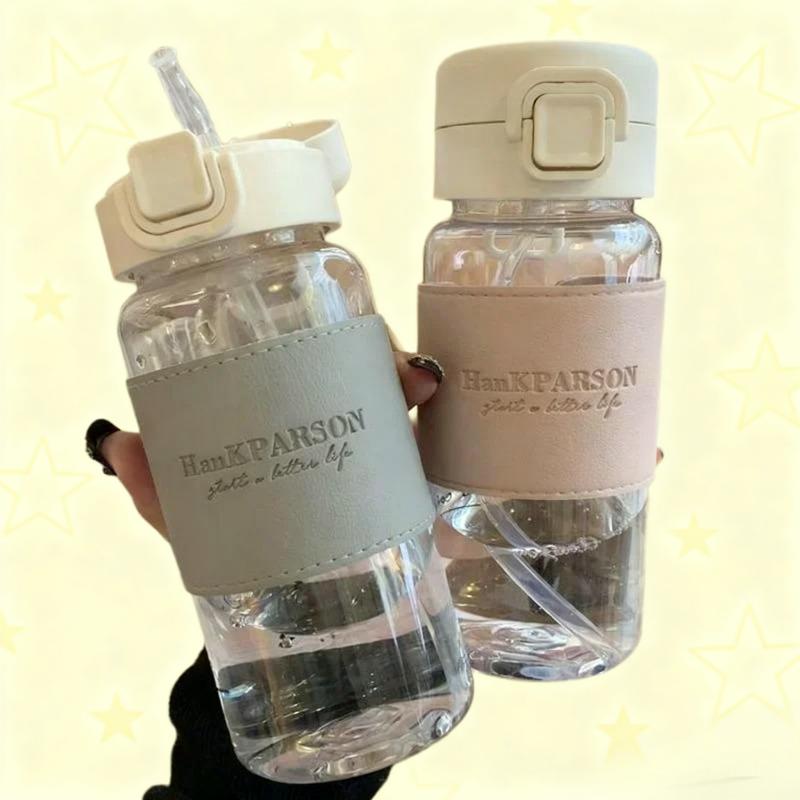 500ml Leak-proof Water Bottle with Straw Portable Student School Food Grade Plastic Water Cup Modern Simple Style Juice Beverage