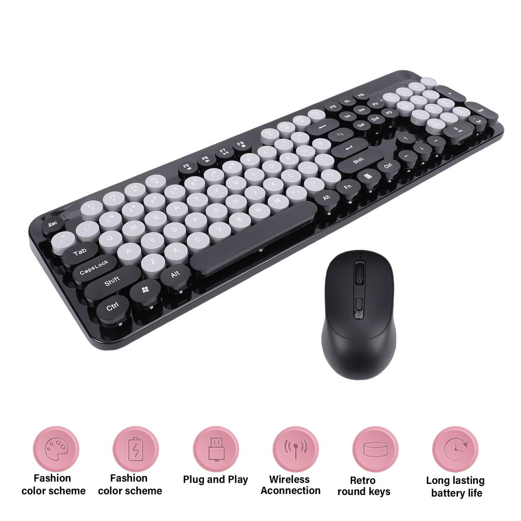 Wireless Cute Keyboard and Mouse 104 Keys Typewriter Retro Round Keycaps Keyboard for PC Laptop Desktop Wireless Keyboard