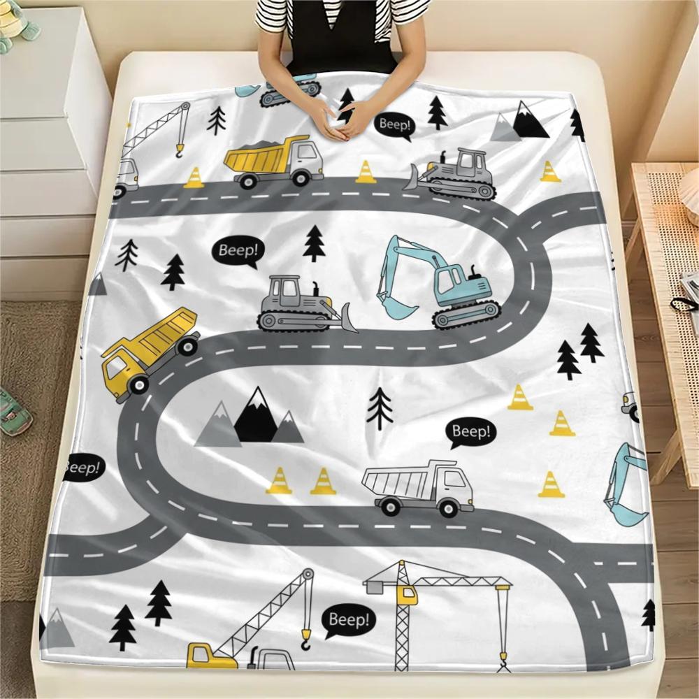 1Pc Cute Vehicle Print Flannel Blanket, High Quality Comfortable for All Seasons, Home Decor, Warmth and Comfort, Perfect for Christmas Gifts W45