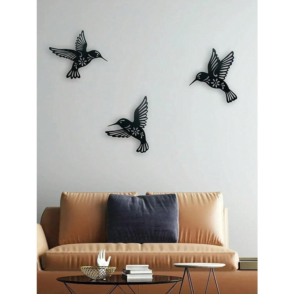 3D Metal Hummingbird Wall Art Set of 3, Modern Black Hanging Decor for Home Garden