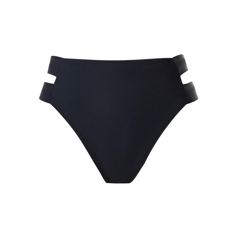 Women's Double Strap High Waist Bikini Bottom Black High Cut Swimwear