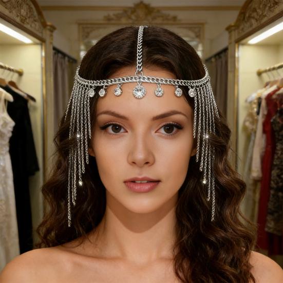 This adjustable women's Indian hair chain fits all head sizes, allowing you to customize it for a perfect fit that complements your hairstyle and outfit. Crafted from high-quality alloy and crystal-clear rhinestones, the multi-layered tiara features securely set stones that won’t fall off, fade, rust, or break, ensuring lasting sparkling.