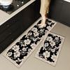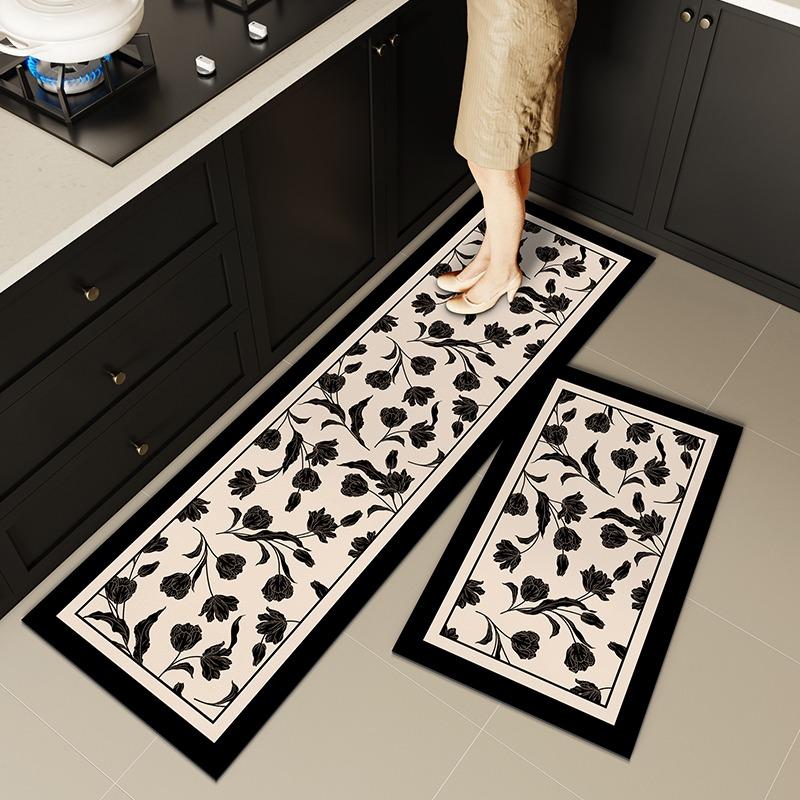 Carpet for Kitchen Non-slip Oil-resistant Erasable Leather Floor Mat Black Flower Water PVC Rugs Home Decoration Long Size Mats