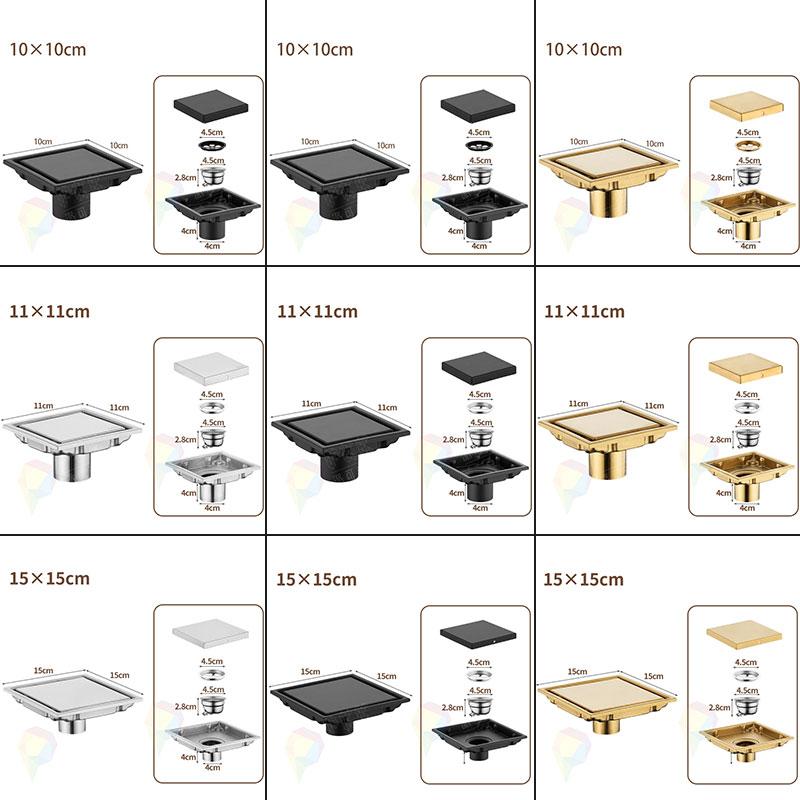 10/11/15cm Tile Insert Square Floor Waste Drain Bathroom Grates Shower Drain 304 Stainless Steel Large Flow Drainer Accessories