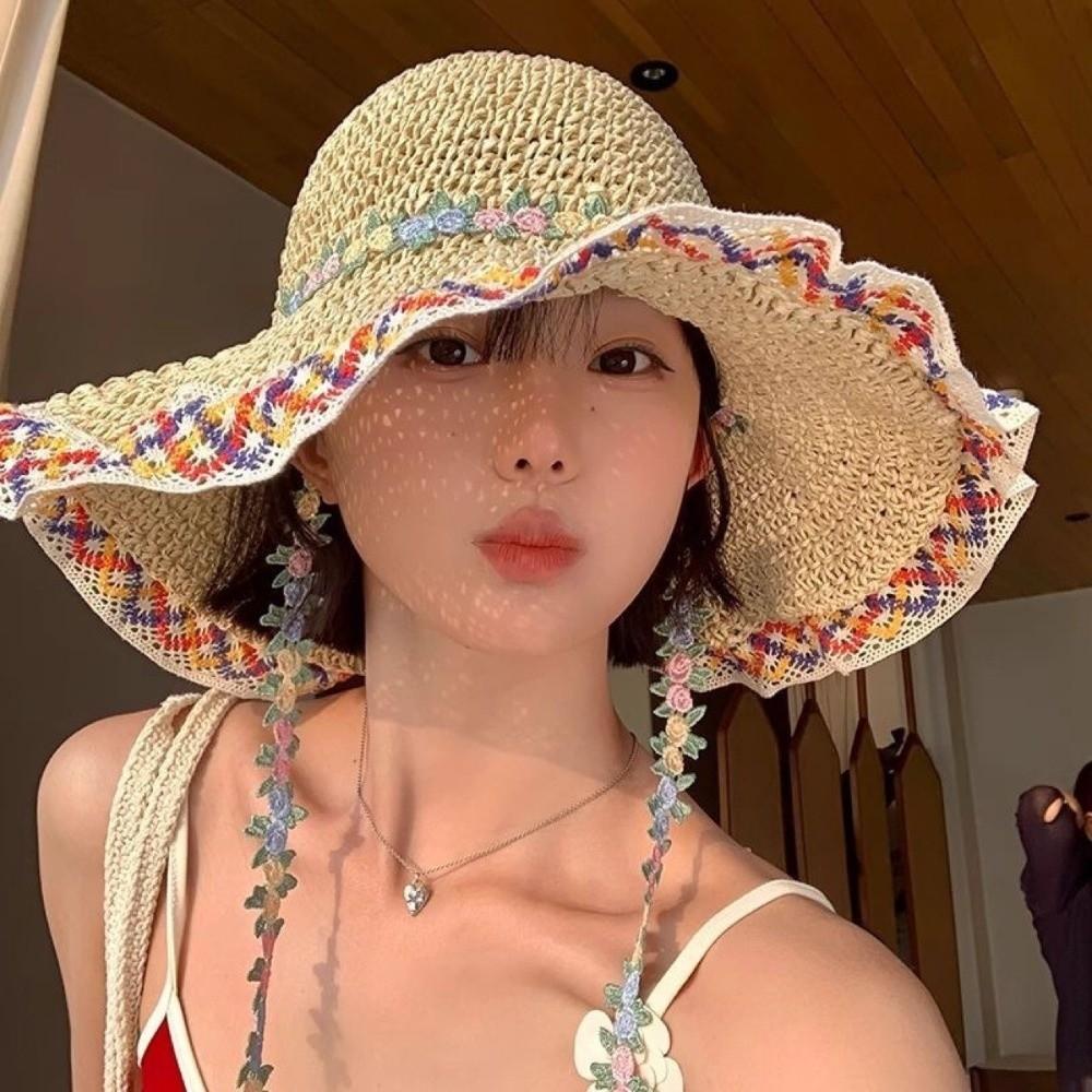 Ethnic Style Straw Hat Large Brim Sun Protection Hat Fashionable Fisherman's Hat Vacation