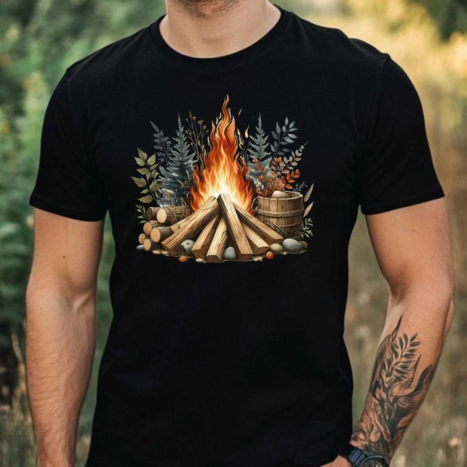Mens Campfire Motif Cotton T-Shirt Size XS To 5XL-