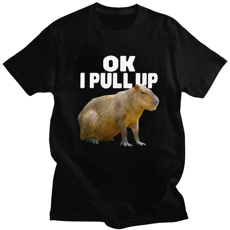 Custom Cool Ok I Pull Up Capybara T Shirt Men Short Sleeve Pure Cotton Tshirt Casual Tee Tops Fashion Tshirts