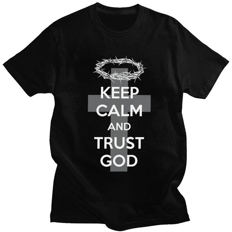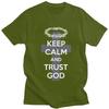 Custom Christian Slogan Keep Calm And Trust God T Shirt for Men 100 Cotton Tshirt Tees Short Sleeves Tshirt Loose Fit Clothing