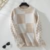 Vintage O Neck Long Sleeve Loose Knitwear Cardigan Sweater Top for Autumn Winter Grid Pattern