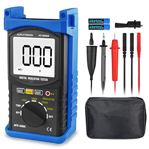 Digital Insulation Resistance Meter, AP-6688B, Ground Resistance Meter, 1999 Count, 5000V Voltage Measurement, 200G Ohm Insulation Resistance Meter, F