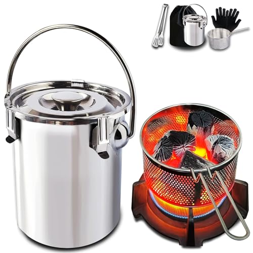[Excellent Quality, Durability, and Sealing] 1. The high-quality stainless steel fire extinguisher is not only durable but also beautiful, and is less prone to rust than charcoal tubes or steel fire extinguishers. The high-temperature resistant silicone seal ring provides superior sealing performance, allowing for quick and safe response to low oxygen levels and fires. 2. The stainless steel charcoal mesh cage is lightweight, strong, and durable, allowing for quick ignition. The foldable handle makes it easy to store.