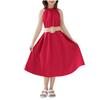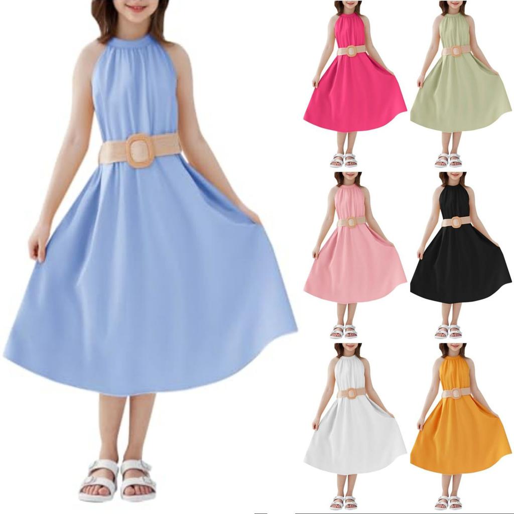 Girls Casual -Neck Sleeveless Waist-defined One-Piece Dress
