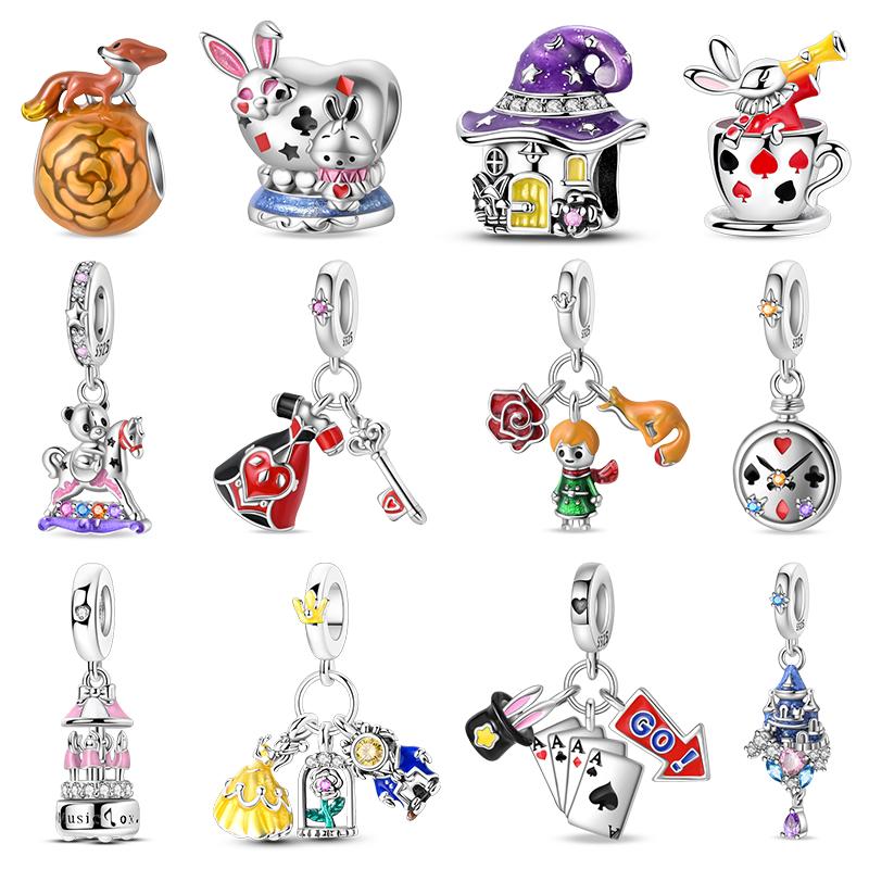 New 925 Silver Color Fox Rabbit Rose Castle Fairy Tale Charms Beads Fit 3mm 925 Original Bracelets DIY Jewelry Birthday Gift