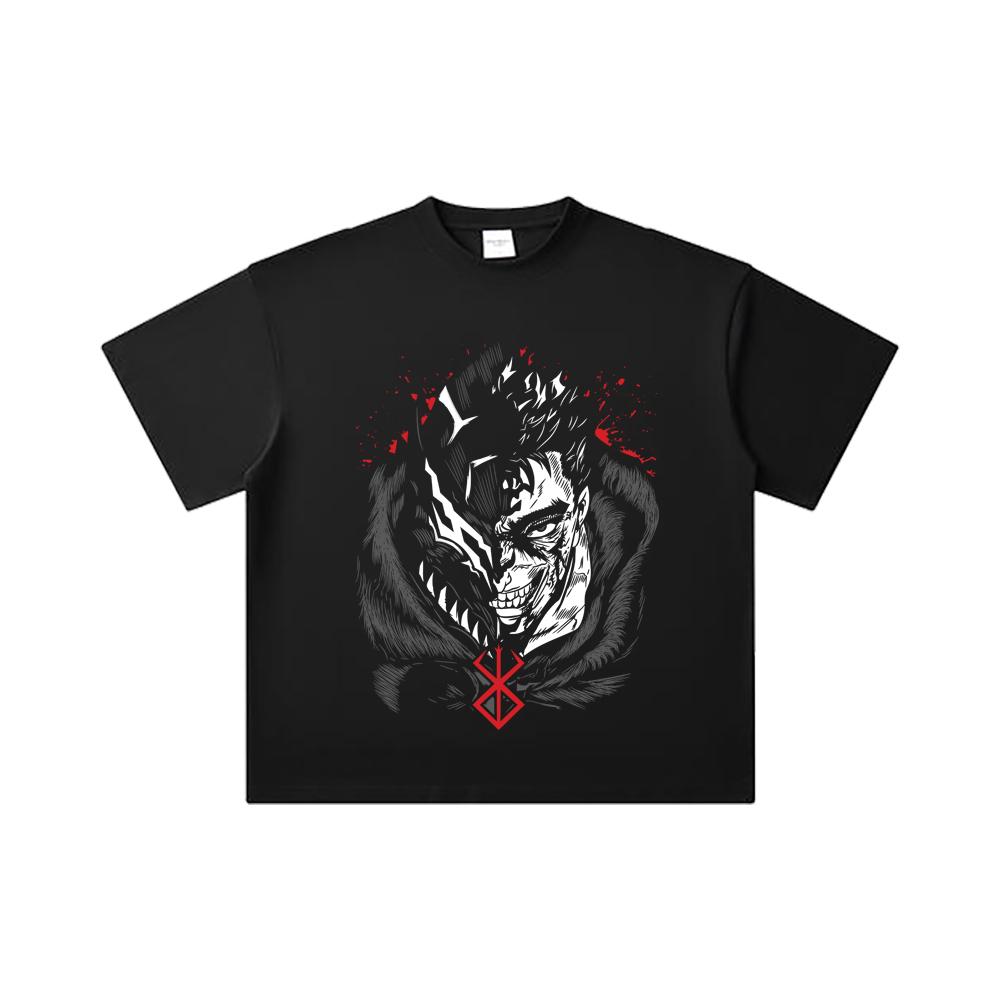 260 GSM Double Yarn 32 Count 100% Cotton Berserk V9 Print Unisex Heavy Cotton T Shirt