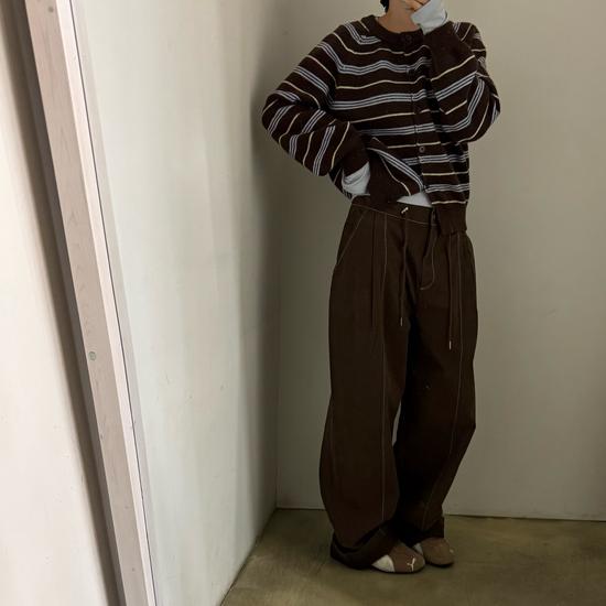 L-Stitch PTL Waist String Wide Side Slit Volume Pants 2 Colors
