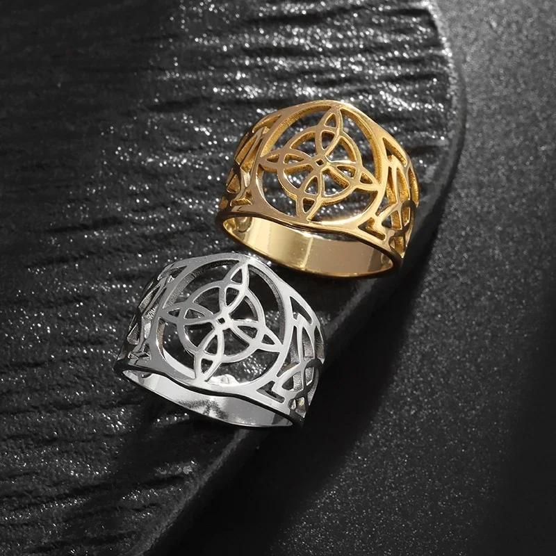Stainless Steel Hollow Witchs Knot Celtic Knot Open Ring Irish Lucky Ring Fashion Jewelry Unisex