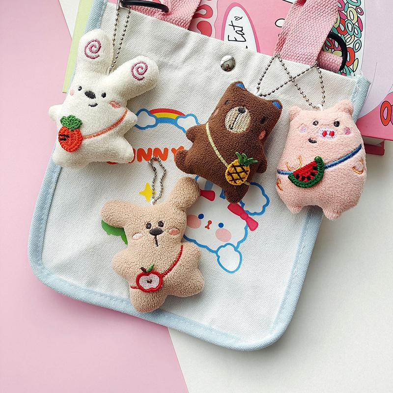 Cartoon Plush Backpack Small Animal Little Rabbit Bear Keychain Cute Plush Backpack Pendant Bag Decoration Accessories Gifts