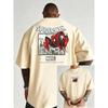 Men's Summer 100% Cotton Fashionable Casual Loose Large Size Coffee and Heartbeat Pattern Printed Round Neck Short Sleeve T-shirt