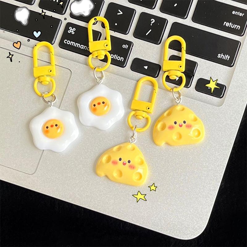 Cute Simulation Food Keychain, Poached Egg Cheese Bag Pendant Funny Jewelry for Girl Students Gifts