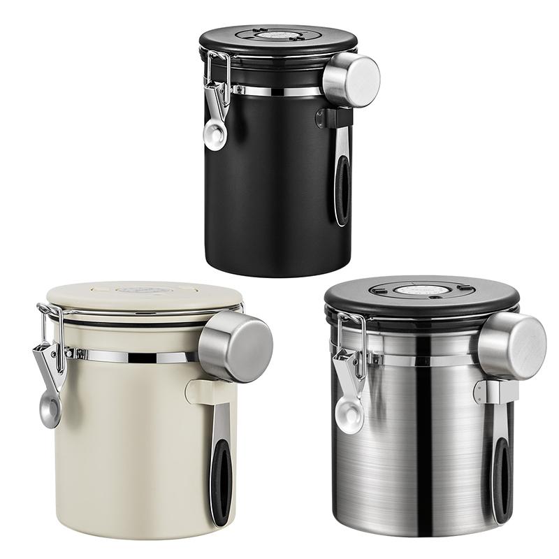 1.2 1.5 1.8L Coffee Bean Jar Airtight Canister Sealed Stainless Steel With Spoon One Way Valve Cannister Coffee Storage Kitchen