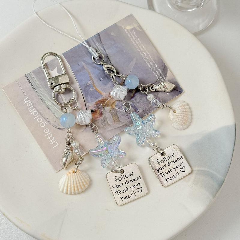 Summer Starfish Shell Keychain Y2K Sweet Beaded Mobile Phone Lanyard Girly Cute Ins Bag Charm Pendant Decoration Gift