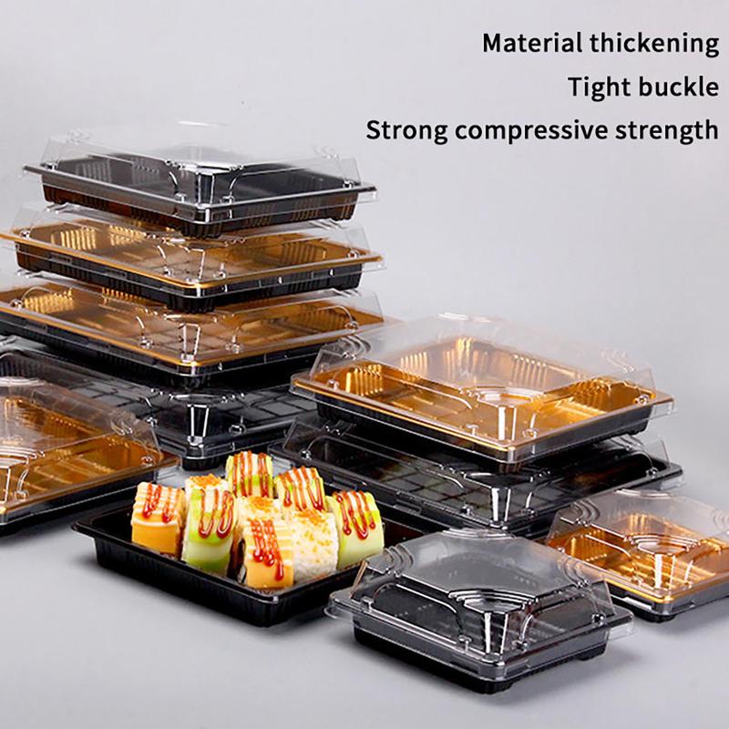 10 Pcs Disposable Sushi Box Home Takeaway Beef Lamb Sliced Salmon Covered Packaging Box Square Sushi Plate Meal Box Containers