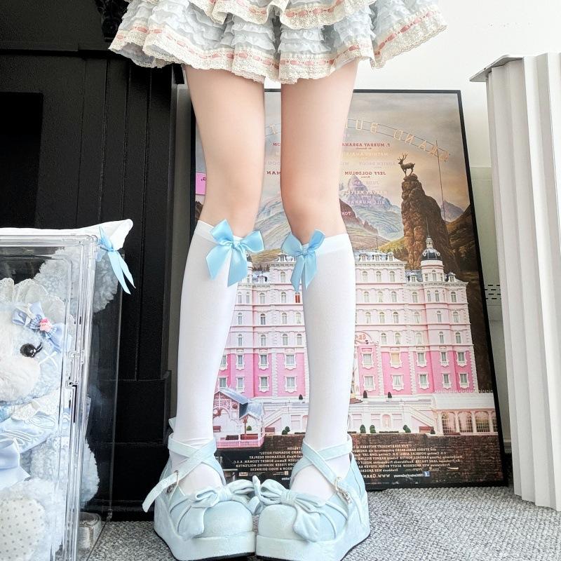 Thin Velvet Jk Blue Bow Japanese Breathable Fashion Girl Long Tube Knee Socks Velvet Medium Tube Lolita