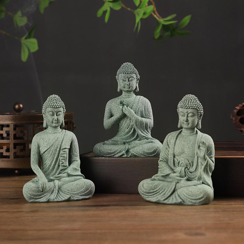 Green Sandstone Buddha Statue: Zen Decor for Home and Garden