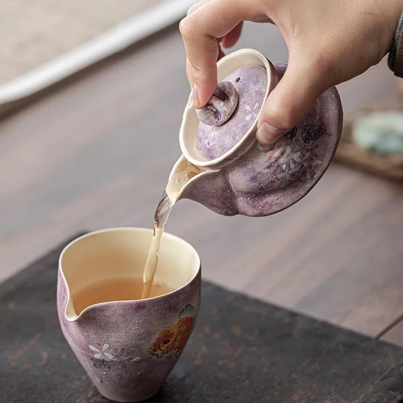 120ml Hand Painted Hydrangea Porcelain Kettle Purple With Handle Small Teapot Tea Ceremony Set Tea Jasmine Teaware Type