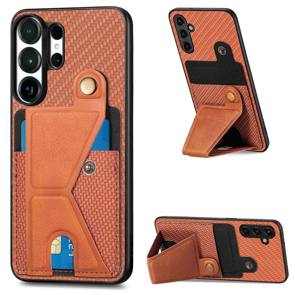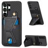 Magnetic Wallet Card Holder Carbon Fiber Texture Phone Case For Samsung S25 Ultra S24 Plus S23 A17 A07 Kickstand RFID Cover